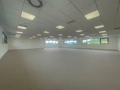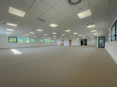 Les bureaux disposent d'un revêtement au sol en moquette, d'un éclairage assuré par des dalles lumineuses de 600x600, de goulottes périphériques pour le câblage, et d'un système de climatisation gainable intégré dans les faux plafonds.